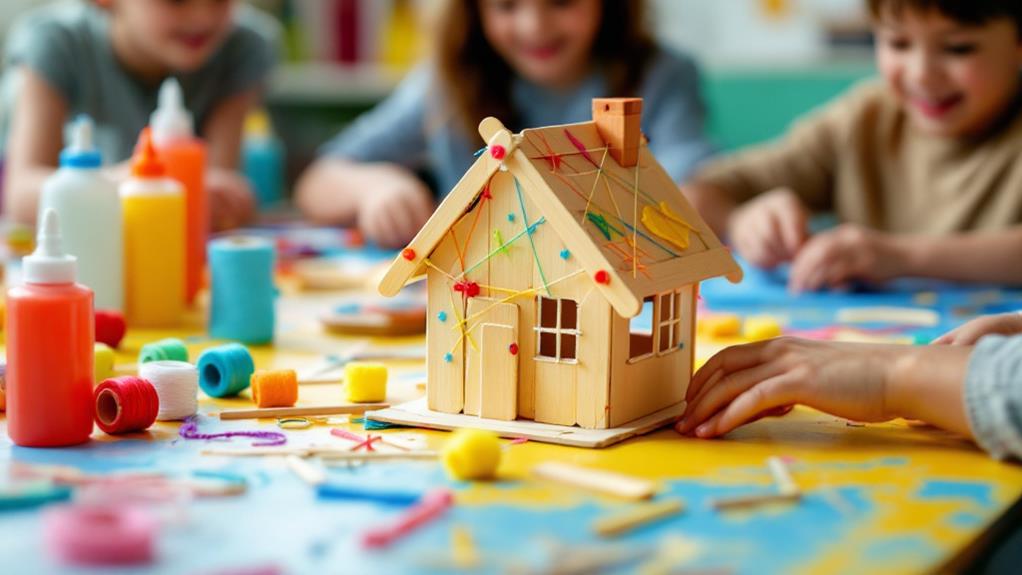 Helping Children Create Crafts With Glue, Popsicle Sticks, and String